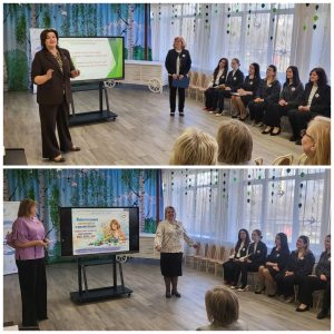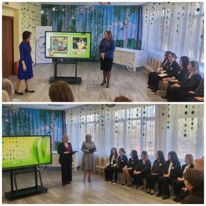 Затем выступили заведующий ГБДОУ №39 Семыкина Ирина Генриховна и старший воспитатель Черныш Юлия Вячеславовна, которые представили общую концепцию работы опорного центра и планы по развитию сетевого взаимодействия между детскими садами района.